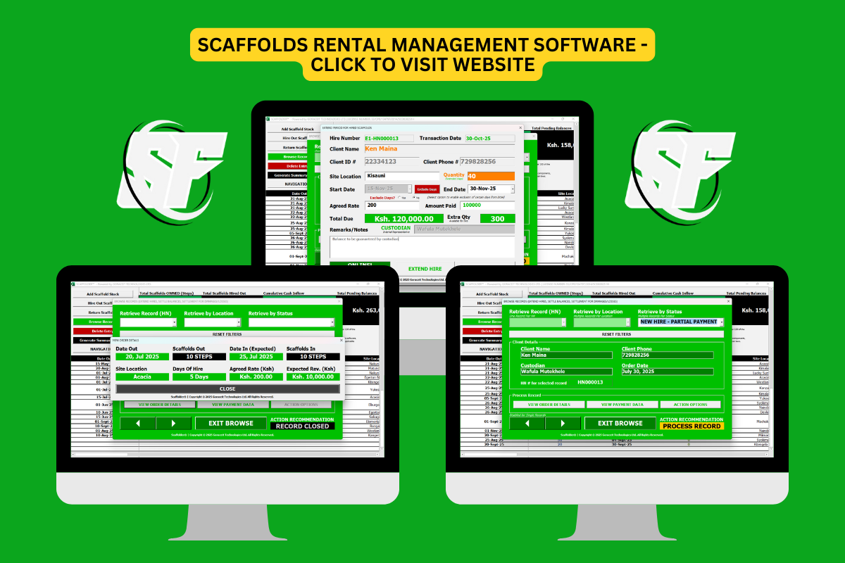 SMS ALERT DRIVEN SCAFFOLDS RENTAL MANAGEMENT SOFTWARE.